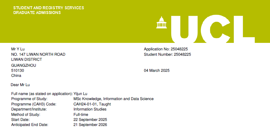 最后,“自信”是贯穿始终的核心心态。从绩点2.77一路提升到3.81,我始终相信:不论起点如何,只要肯努力,就一定能突破自己。申请过程中可能会遇到拒信、焦虑、迷茫,但这些都只是过程而非终点。请相信,只要你准备充分目标清晰,你一定配得上你向往的未来。