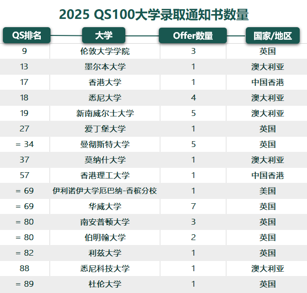 本届毕业生QS30(世界排名前30大学)录取率47%,继续保持在高位录取水平,QS100录取率达93%,连续两年突破九成。