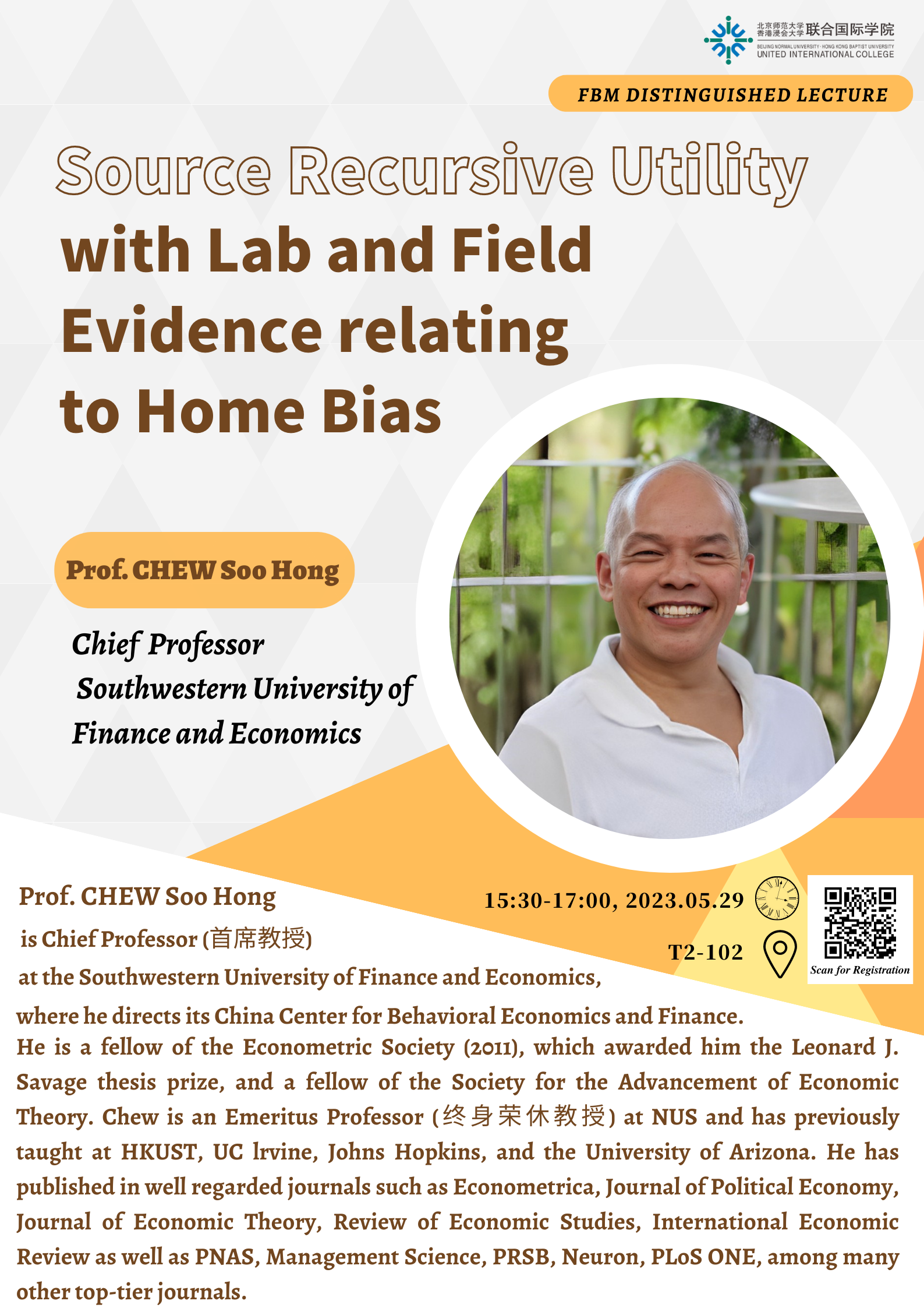 29 May 2023 - FBM Distinguished Lecture Series #17_Source Recursive Utility with Lab and Field Evidence relating to Home Bias