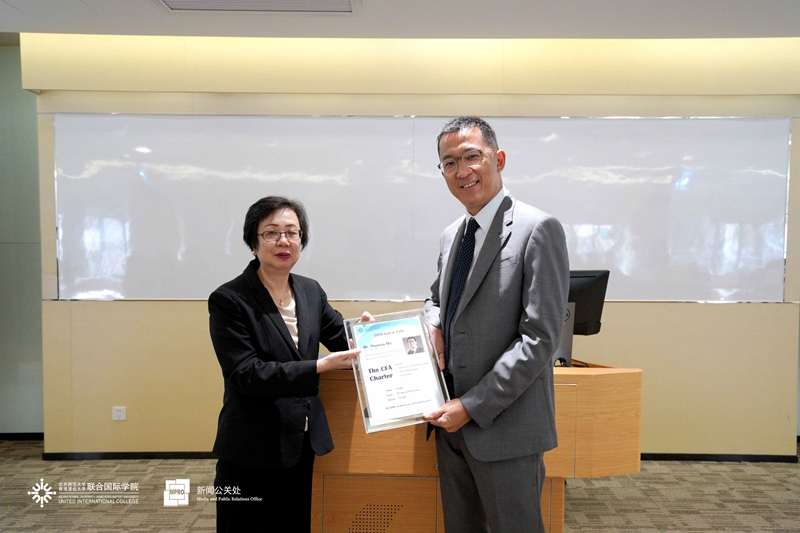 The guest talk finished with a question and answer session, where Mr Ma used knowledge obtained from more than 15 years in a professional consulting firm. UIC student, Zhuang Ziruo asked an important question, regarding which certification would be best in what field, and several students after him asked similar questions regarding if their degree path would fit with the CFA title. Mr Ma explained that the CFA can help anyone in any field.