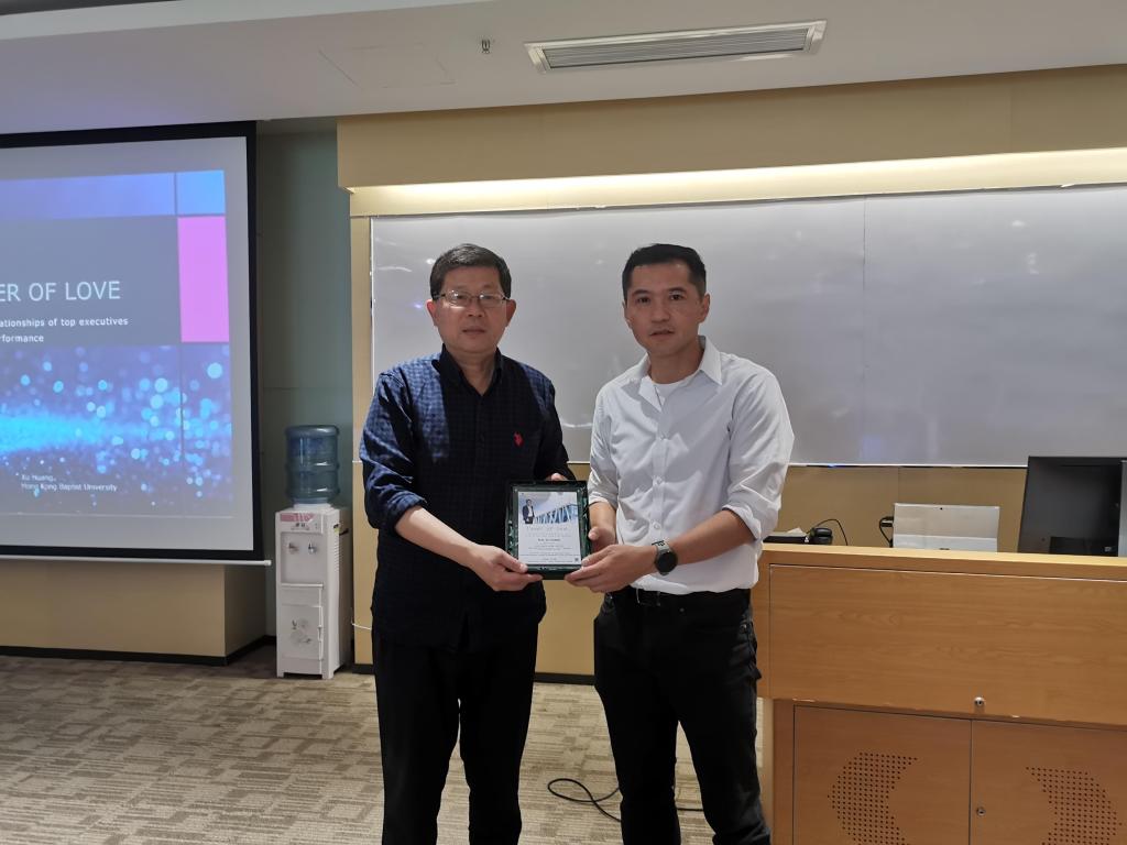 Before the lecture, Prof. Wenbin Liu, Dean of DBM, introduced Prof. Huang and gave a warm welcome. Prof. Liu also presented a souvenir to the guest.