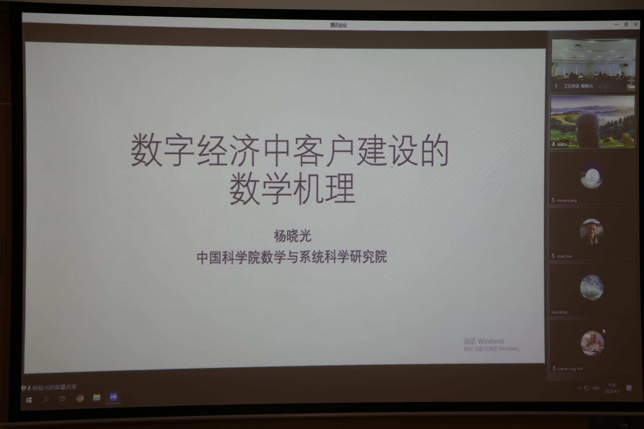 On the afternoon of 7 April 2022, UIC was honored to invite Professor Yang Xiaoguang, a researcher from the Academy of Mathematics and System Sciences of the Chinese Academy of Sciences, to present an online sharing session on the theme of "Mathematical Mechanisms of Customer Building in the Digital Economy".