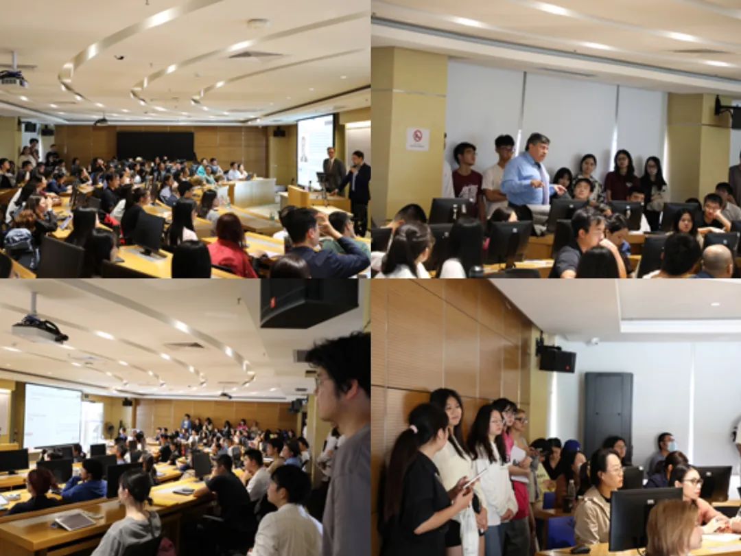 Mr. Li interacting with a student during the Q&A session