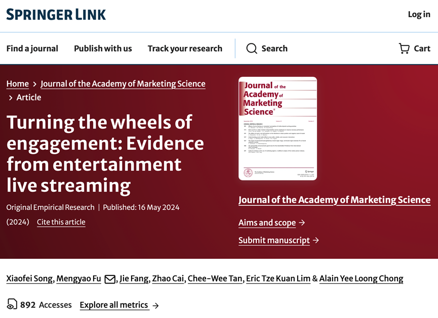 Published in the prestigious Journal of the Academy of Marketing Science (JAMS), the paper, "Turning the Wheels of Engagement: Evidence from Entertainment Live Streaming, focuses on entertainment live streaming", revealing how streamers can optimise their schedules—timing, duration, and frequency—to engage audiences more effectively and drive higher income.