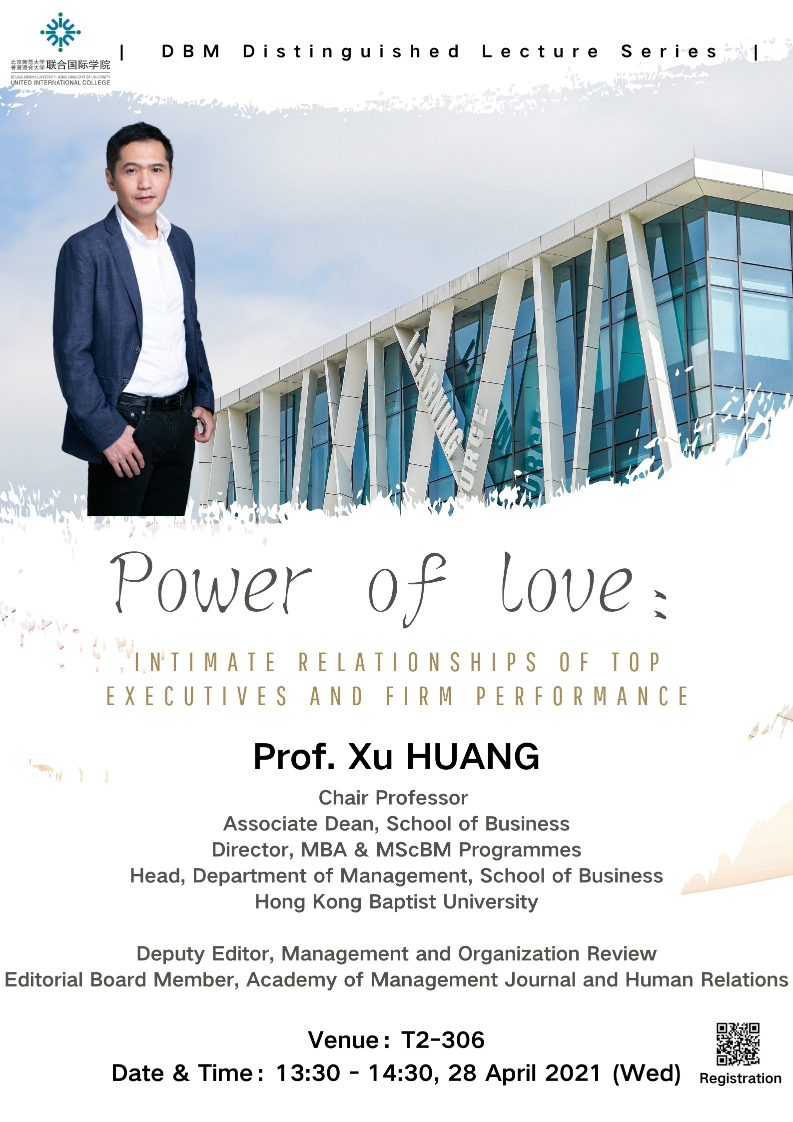 Power not only corrupts but also induces paradoxical behaviors of powerholders. In this seminar, I will present the results of three projects, in which we investigated how top executives’ intimate relationships with their family members and romantic partners shape their leadership behaviors and firm performance. In Project 1 (i.e., a recently published paper), we theorized and demonstrated how business owners exhibited paradoxically coercive control over their child-successors during power transitions in family organizations. In Project 2 (i.e., a paper under review in a journal), we examined the impact of “political marriage”, defined as a marital relationship between a son/daughter of the family business owner and a daughter/son of a politician, on firm performance. Using data from 164 family firms in China, we found that political marriage benefits family firms the most when the duration of political marriage is long and the degree of romantic love of the married couple is low (rather than high). In the Project 3 (i.e. an ongoing project), using data from S&P 1,500, we tested the idea that married CEOs are more likely to drive their firms to have better CSR performance; and a high level of power possessed by CEOs is likely to corrupt the beneficial effects of CEO’s marital status.