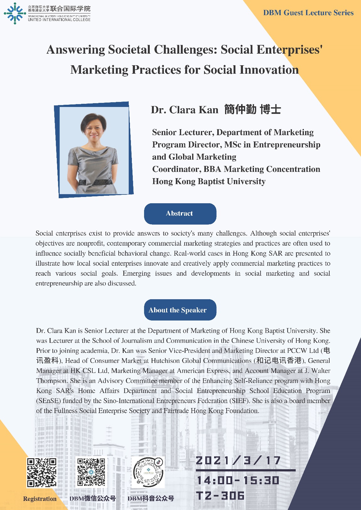17 March 2021 - DBM Guest Lecture Series #3_Answering Societal Challenges: Social Enterprises' Marketing Practices for Social Innovation