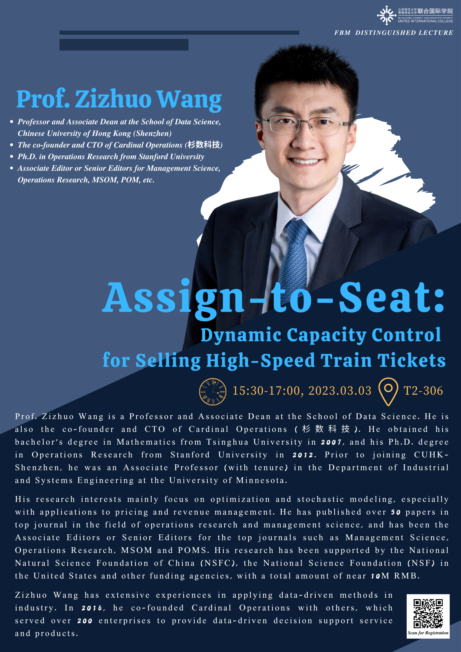 3 March 2023 - FBM Distinguished Lecture_Assign-to-Seat: Dynamic Capacity Control for Selling High-Speed Train Tickets