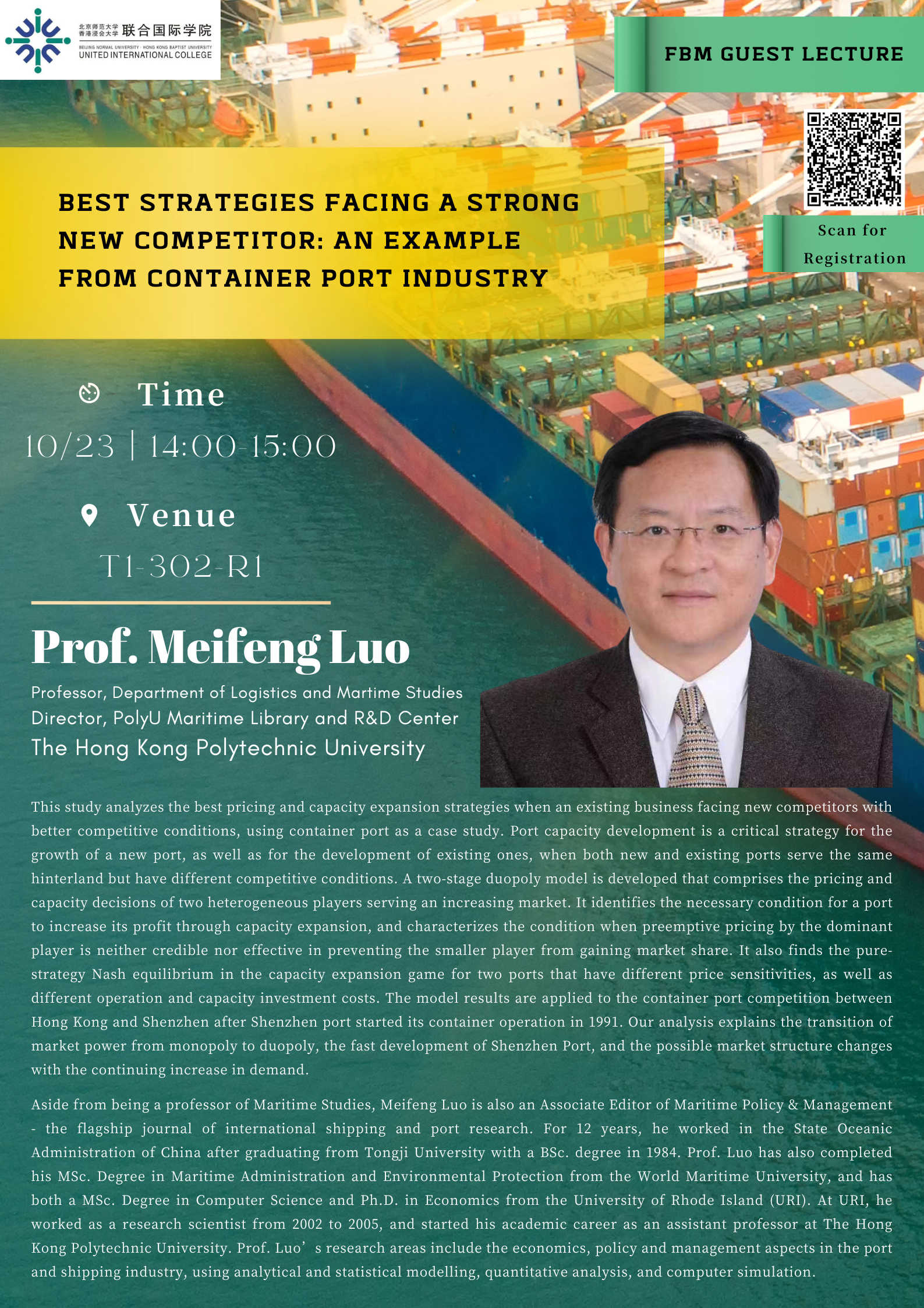 23 October 2023 -Guest Lecture| Best strategies facing a strong new competitor: An example from container port industry