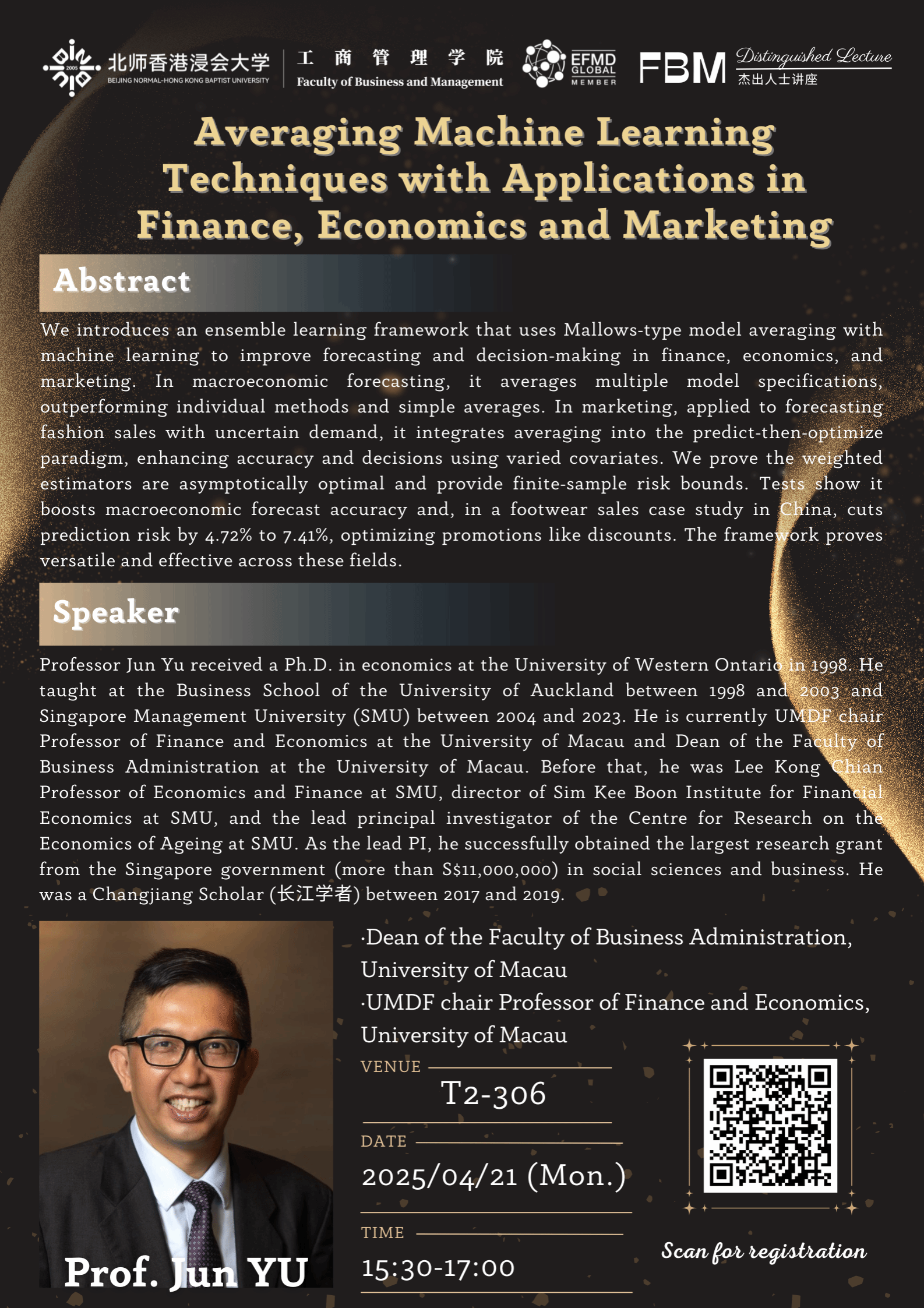 21 April 2025 - FBM Distinguished Lecture丨Averaging Machine Learning Techniques with Applications in Finance, Economics and Marketing