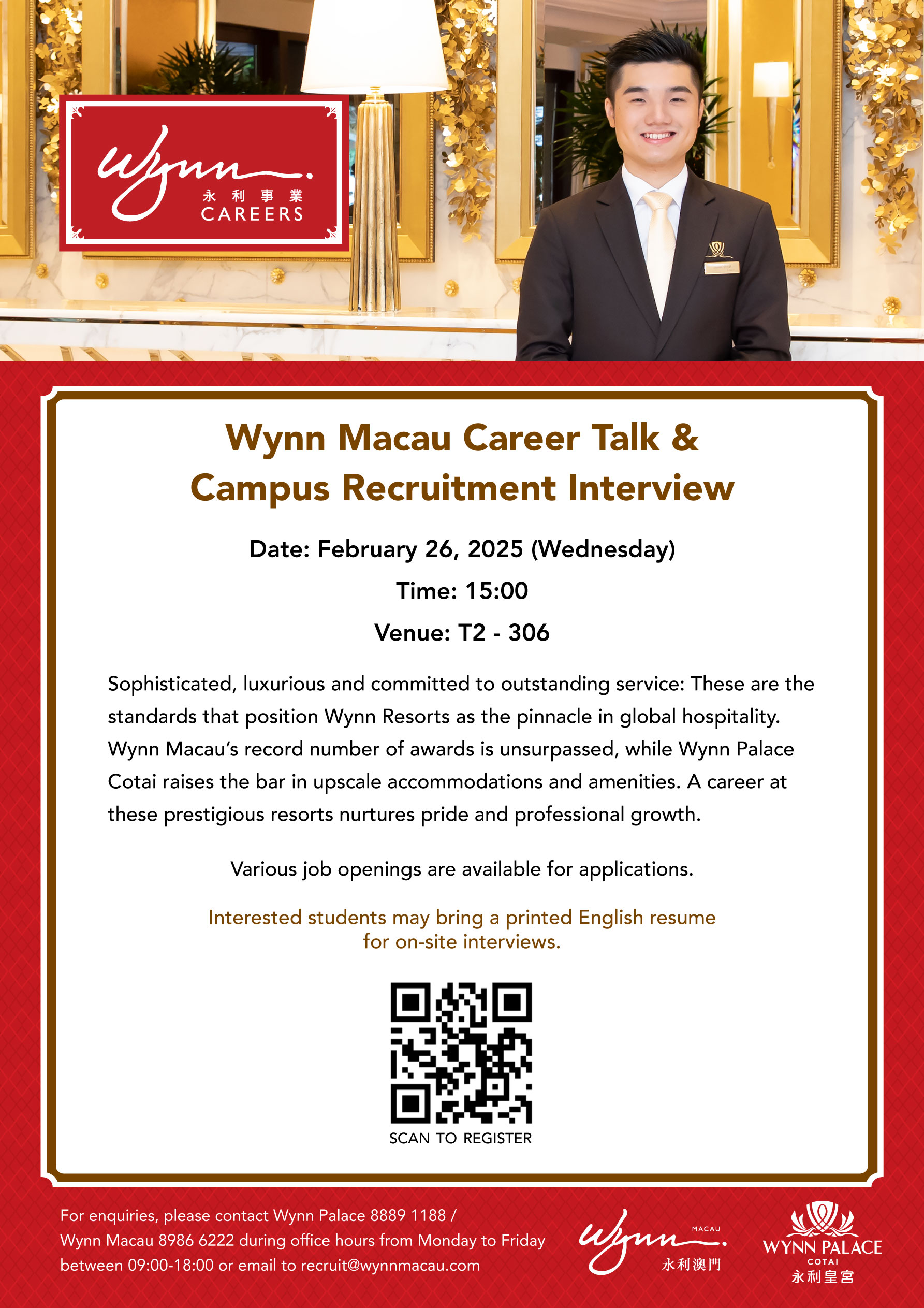 Topic: Wynn Macao Career Talk & Campus Recuitment Interview