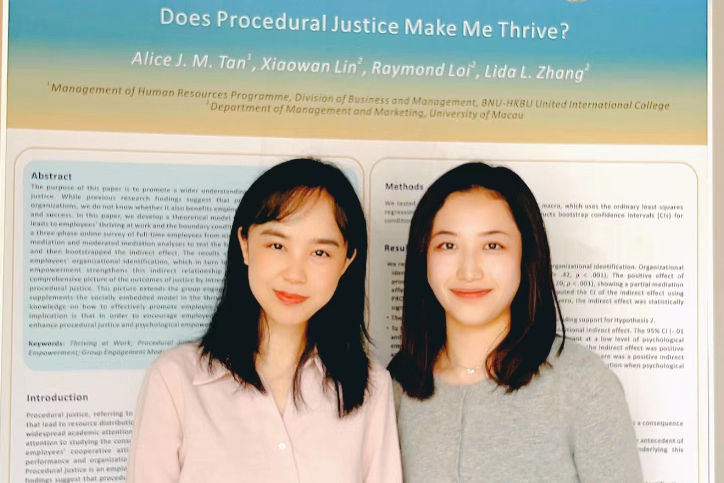 In her third year, under the guidance of Dr Ki Ho Jun and Dr Hu Zhehua, Feng gave a presentation as the only undergraduate student at the Academy of Management (AOM) annual conference.