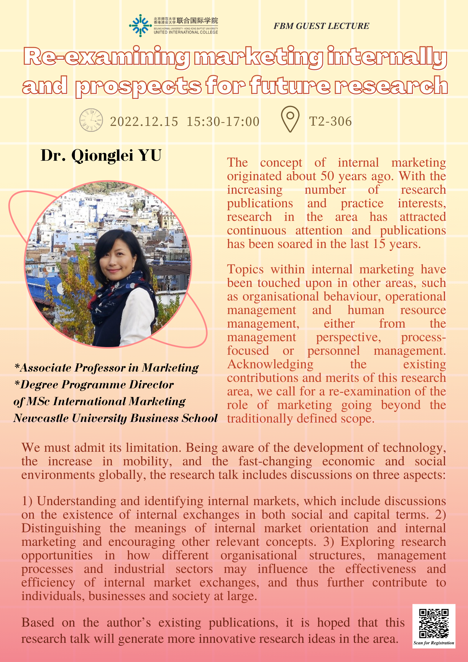 2022年12月15日 - 工商管理学院嘉宾讲座系列#3 - 重新审视内部营销及其研究前景