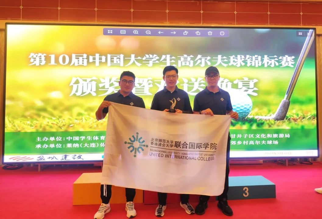 2024年10月12-18日,在中国学生体育联合会主办的第10届中国大学生高尔夫球锦标赛上,北师港浸大(UIC)工商管理学院金融经济系2022级学生林弋戈勇夺普通组男子个人冠军,拿下学校高尔夫球队历史首金。同时,球队教练张青华被授予“优秀教练员”称号、队员林弋戈荣获“优秀运动员”称号。