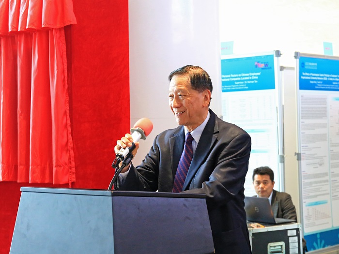 本次海报展将在行政楼二楼大堂展出至12月16日。出席此次开幕式的嘉宾还有协理副校长关利平教授、教务长李建会教授、财务规划及发展执行总裁陈立信。