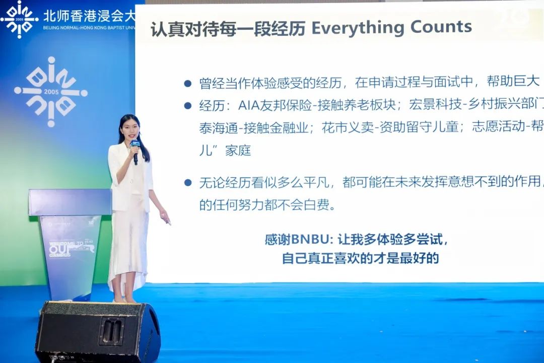 BNBU与境外大学相类似的课程设置和培养模式,让我在大学期间就有机会模拟未来社会和职场中可能遇到的种种情景,如presentation、团队内部的分歧解决、突发事件的处理等等。这让我的沟通、团队协作、处理问题等能力都得到了很好的提升。