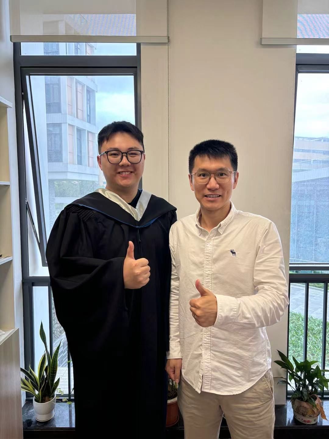 王俊程(右二)参加毕业答辩,与导师黄涛老师(右一)合影