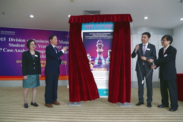 工商周开幕仪式暨2015工商管理学部学生毕业论文和QP个案分析比赛成果海报展于当日在校史馆举行,吴清辉校长和DBM院长左龙佩兰教授与应邀出席的香港会计师工会会长何超平先生和公会行政总裁及注册主任丁伟铨先生共同为工商周揭幕。