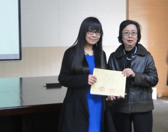 左教授为完成转制课程的学生颁发证书