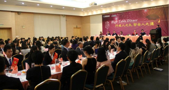 高桌晚宴是UIC重要的校园文化特色活动。这次的高桌晚宴由工商管理学部和四维主办,同时也是2013-2014年度导师关顾计划(MCP)的闭幕仪式。工商管理学部院长左龙佩兰教授作开场演讲时提到,“高桌晚宴是增加师生之间互动的好机会,更能培养学生作为领袖所具备的,包括诸如良好社交礼仪与习惯等在内的基本素质。”