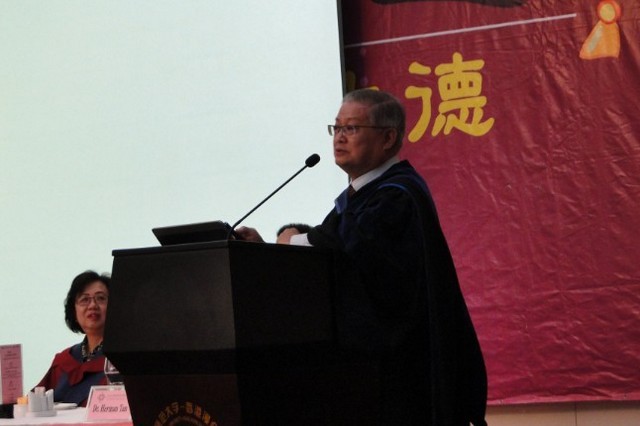 从左到右:吴佩仪教授(文化创意管理系主任)、徐树荃教授(市场营销系主任)、关利平教授(协理副校长)、黄昭虎教授(南洋理工大学商学院策略与行销系主任)、吴清辉教授(校长)、左龙佩兰教授(工商管理学部院长)、陈嵘漍教授(人力资源管理系主任)