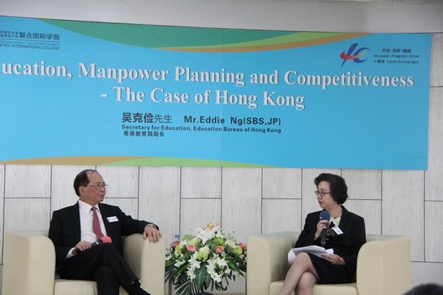 香港教育局局长吴克俭于5月7至8日来访我校,以英语在高桌晚宴上发表演讲及举行专题讲座,分享对香港教育及竞争力的看法,以及个人成长的经验,并与在UIC就读的香港学生座谈交流。他认为UIC在内地办学的实践是成功的。