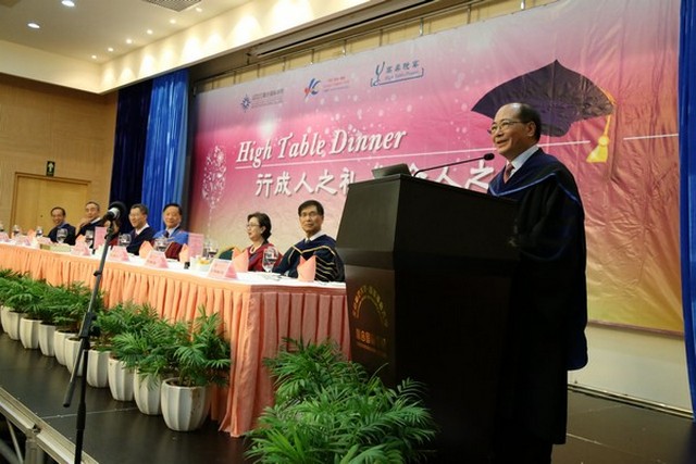 在7日晚举行的高桌晚宴上,吴克俭以《启发与抱负》为题发表演讲,分享个人成长及从业经历,勉励学生勇于探索世界,积极规划人生,学会如何学习,养成终身学习的习惯,并建议学生做事要专注、投入,要学会在服务中学习、在学习中服务。