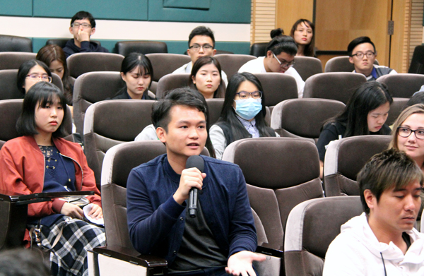 黄昭虎教授独到的见解和幽默的演讲风格让在场 师生们印象深刻,尤其在互动环节,大家争相提问,气氛十分热烈。来自大四人力资源专业的吕同学很有感慨,他表示一开始对兵法了解不多,但是听了之后发现蓝 海战略和波特五力模型都有局限性,而孙子兵法的精髓远远超过了他们,讲座上所提出的主动防御、主动思考和提前预防等观点,大大地扩展了自己的思维。法国留 学生Romane Licour则表示教授把孙子兵法的精髓应用到商业战略中,对她以后的发展计划起到了很好的启发作用。