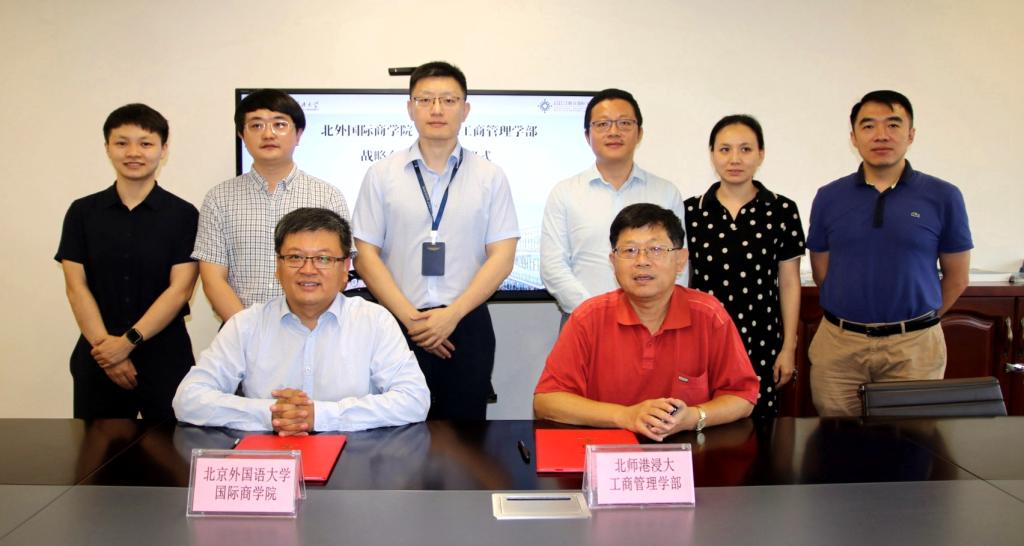 2020年9月8日,北京外国语大学国际商学院院长牛华勇教授和其团队一行到访北师港浸大工商管理学部,代表北外国际商学院/佛山研究生院与我学部签署合作交流谅解备忘录,双方将在学生、教师、学者和学校管理人员交流互访,科研合作,学术资源与学术信息的交流与共享方面开展合作。