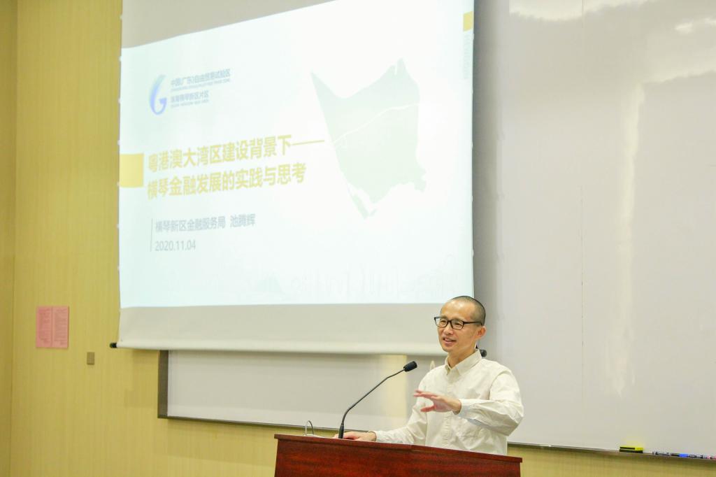 2020年11月4日下午,北师港浸大工商管理学部邀请了横琴新区金融服务局池腾辉局长为师生们带来主题为“粤港澳大湾区下横琴跨境金融的发展方向” 的讲座。作为工商管理学部庆祝UIC十五周年校庆的系列活动之一,此次活动为名人讲座系列的第三讲。