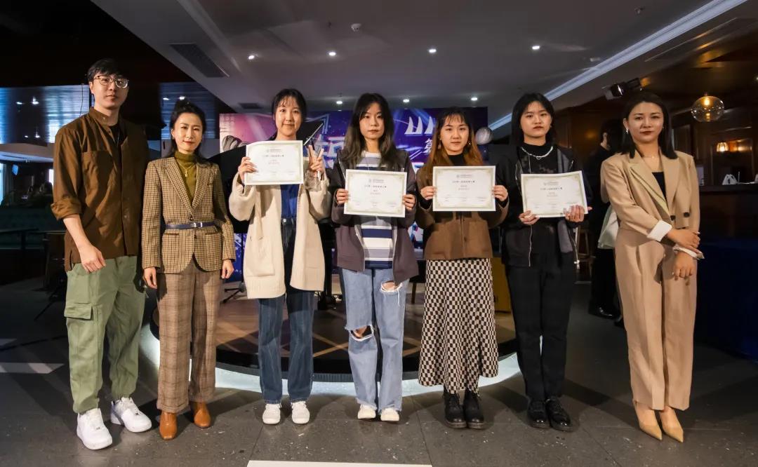 校外评委陈墨(左一)、钟慧(左二)、湛荔(右一)为最佳创意奖获得者颁奖
