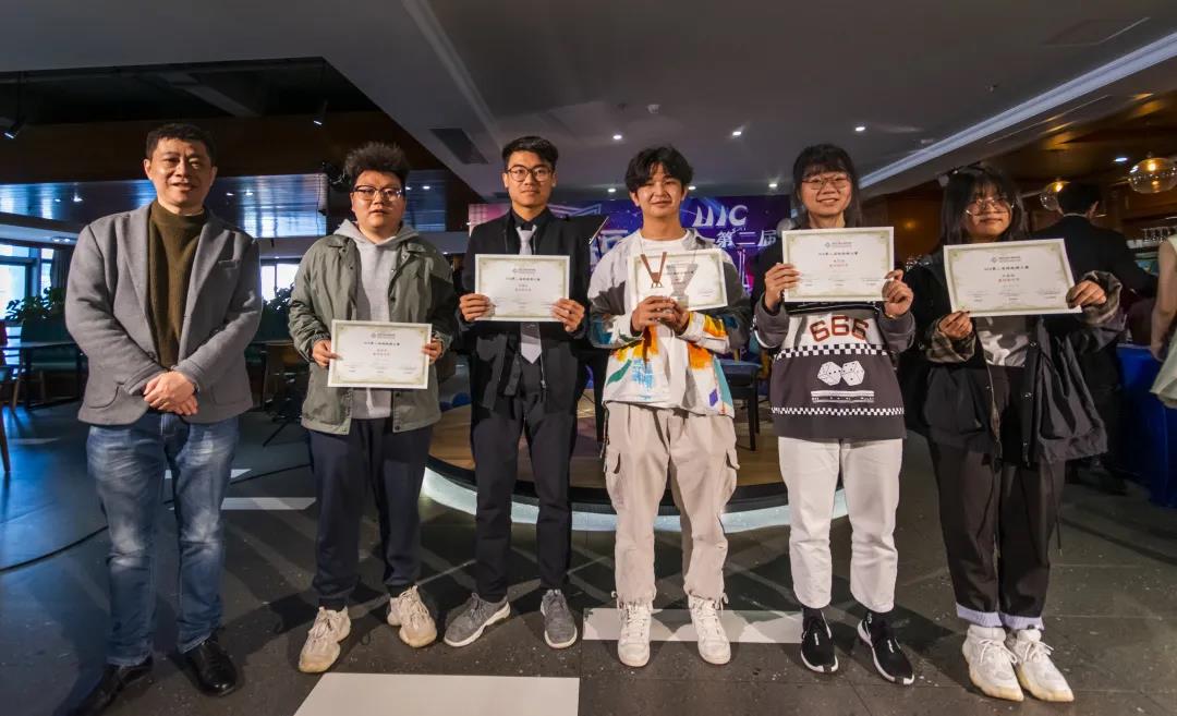 校外评委王天晓(左一)为最佳人气奖获得者颁奖