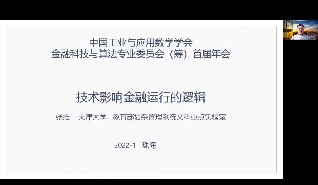 1月8-9日,中国工业与应用数学学会(CSIAM)金融科技与算法专业委员会(筹)首届年会在北师港浸大(UIC)举行。大会旨在推动数字经济下数据科学、人工智能和区块链等科学技术在金融领域的理论拓展和应用实践,来自学术界和业界的海内外专家学者逾1600人次通过线上和线下的方式参与会议。