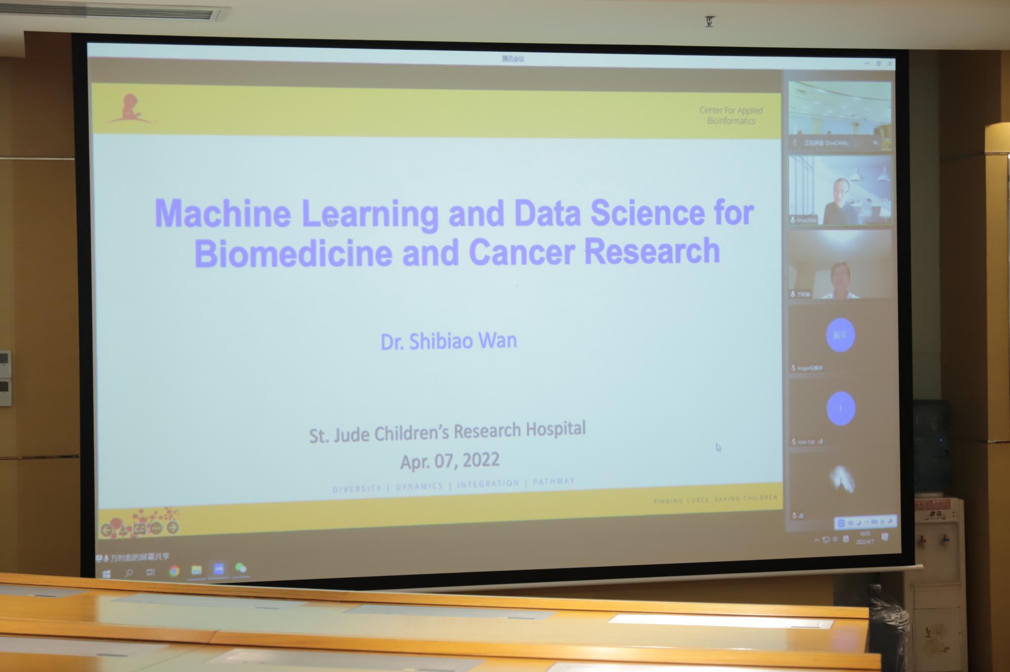 4月7日上午,美国圣犹达儿童研究医院生物信息研究科学家万时彪博士为北师港浸大师生带来主题为“机器学习与数据科学在生物医学、癌症治疗方面的应用前景”的嘉宾讲座。