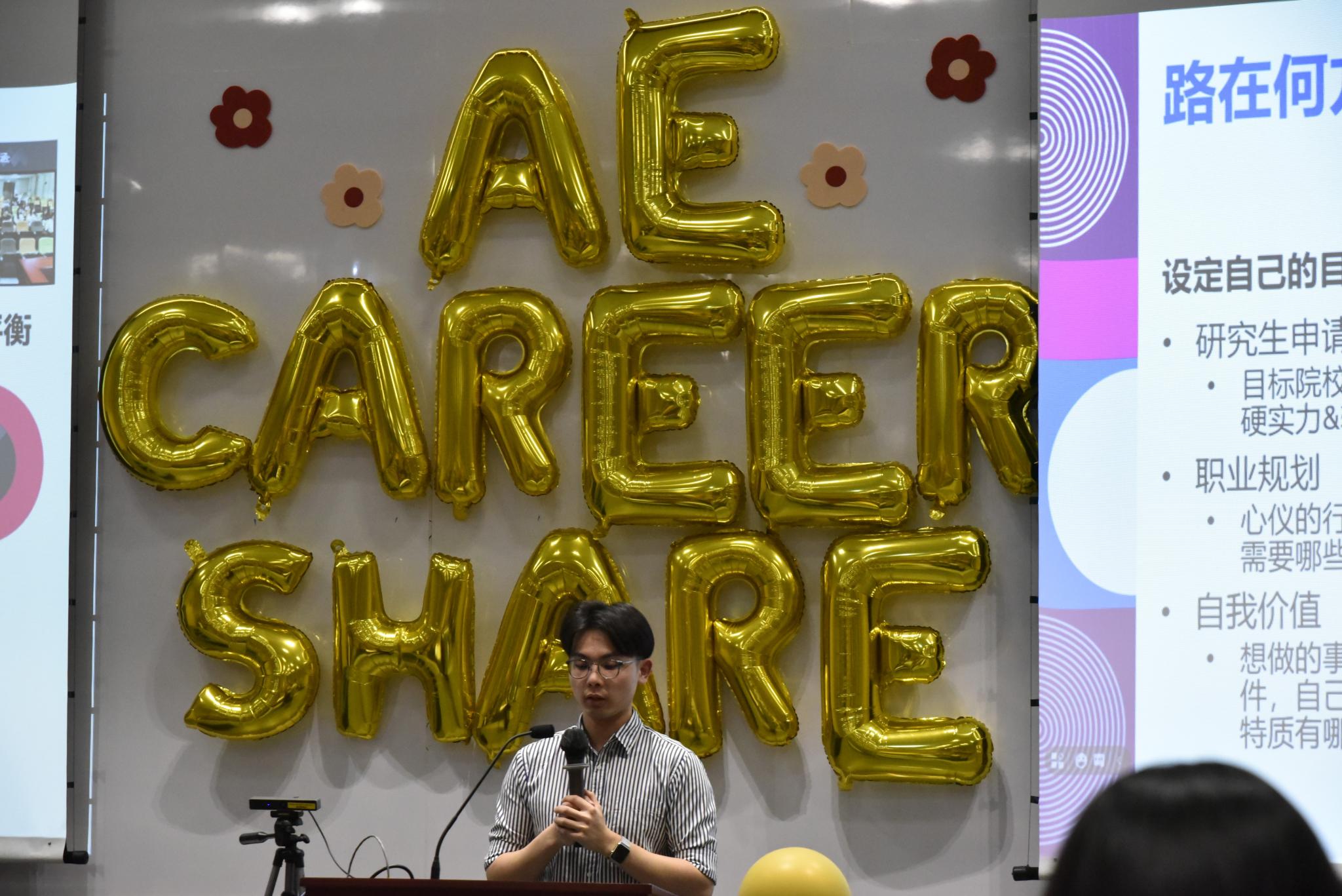 姚宇星同学分享了关于雅思和GMAT的学习备考心得;秦雷同学分享了如何在大学四年找到自己的兴趣和目标的方式以及如何有效规划大学四年的学习生活的一些宝贵经验;陈一鹏同学分享了如何找到与自己兴趣相关的行业实习的技巧;王锐检同学分享了如何兼顾社团活动和课程学习,如何有效安排课余时间。