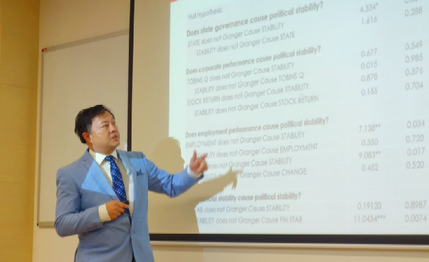 研讨会开始时,吴维枫博士介绍了国家在企业治理,控制经济和就业以促进中国稳定和繁荣的一些背景知识。他的研究验证了中国企业追求两个目标的概念:经济价值最大化和就业,这与西方企业追求单一价值最大化目标不同。