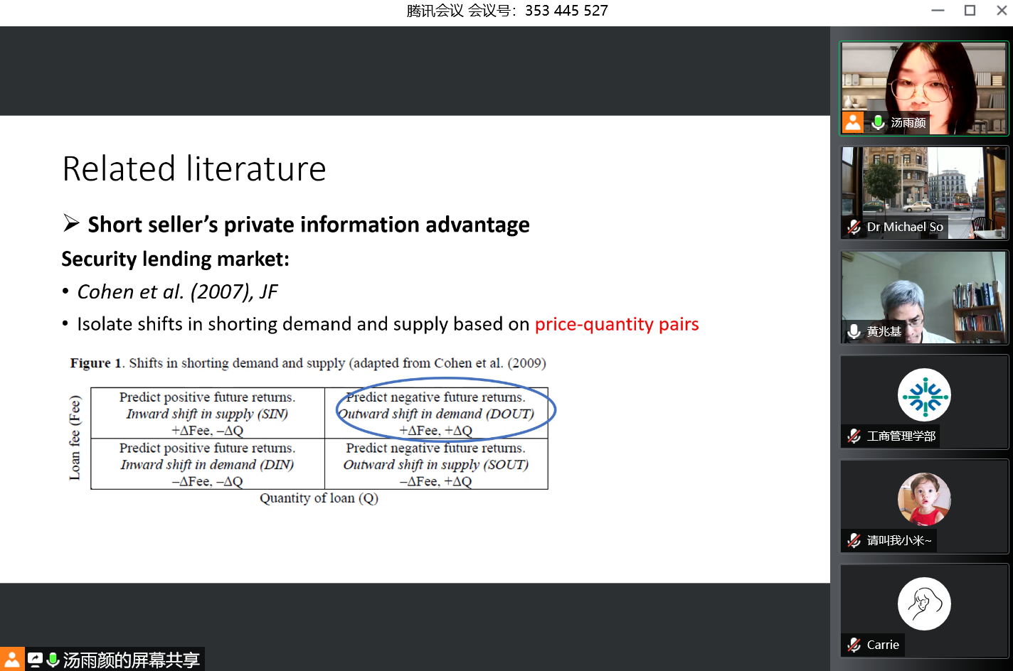 汤雨颜博士的研究强调了审计监管机构对降低企业私有信息流,提高资本市场公平度的影响。本次研讨会探讨了企业私有信息流这样一个重要的学术话题,所有参会者都积极参与并有兴趣参与未来相关的研究。