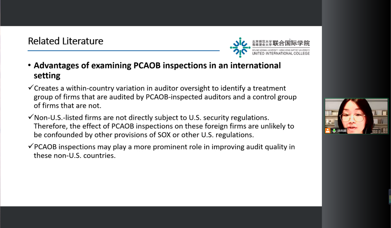 汤雨颜博士的这篇论文探讨了Public Company Accounting Oversight Board (PCAOB) international inspections对做空投资者收益率的影响。运用difference-in-differences的研究方法, 这篇文章发现PCAOB international inspections可以减弱做空需求与股票收益的负相关关系。这个结论说明PCAOB international inspections提高了企业公开信息的质量,从而降低做空投资者的私有信息的优势。