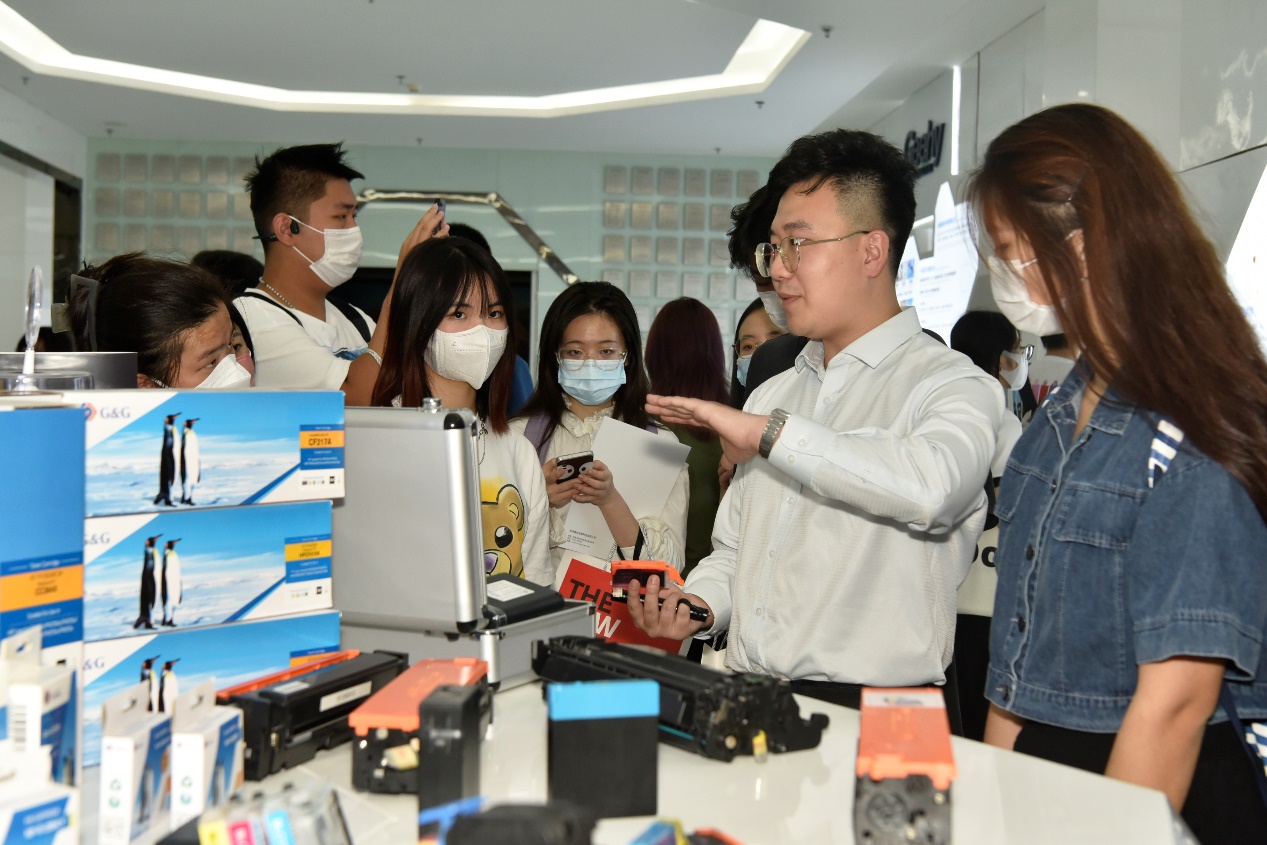 张润锋先生向同学们介绍纳思达旗下耗材品牌“格之格”和 “G&G”