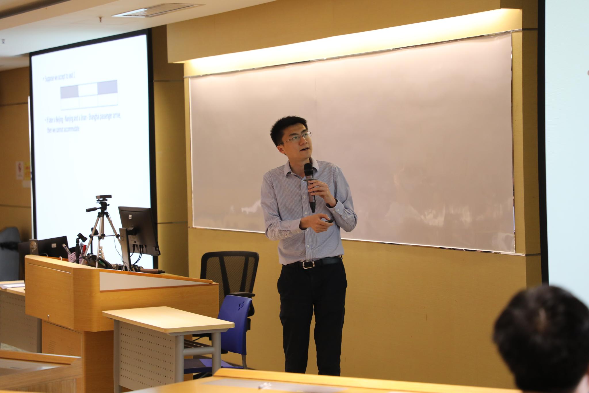 讲座的第一部分,王教授分享了他最近的研究“座位分配:高铁售票动态容量控制”。他以中国常见的高速铁路为例,并鼓励观众对座位分配做出假设。接着,他提出了研究动机和研究问题--旨在调查如何提高铁路系统的效率,以及座位分配是否会影响整个系统的效率。王教授分析该问题为一个所有请求都给定的静态问题,虽然这个问题通常是很难解决的,但他们在多项式时间内确定了可解性的条件。