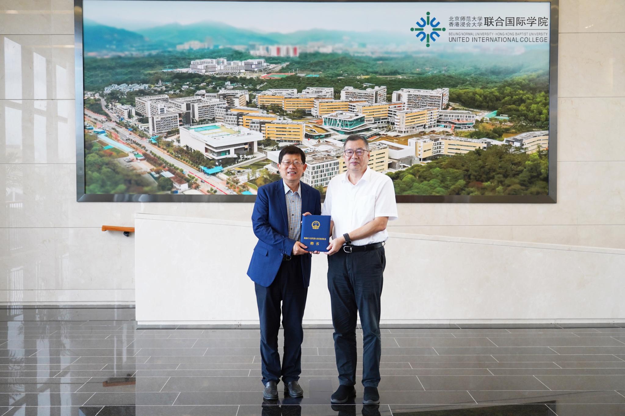 2023年9月14日,珠海市人民代表大会常务委员会财经咨询专家聘任仪式在北师港浸大(UIC)举行,UIC工商管理学院院长刘文斌教授获聘为市人大常委会财经咨询专家。