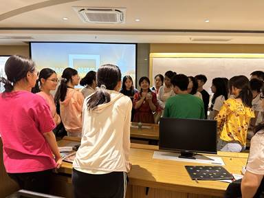 骆女士在分享的同时还穿插了许多关于文物的互动提问,不仅活跃了气氛,还让大家学到了许多有趣的文物小知识。骆女士还带了两个自己珍藏的藏品: 梅花瓶和外销壶。她细心的为同学们进行讲解,包括它们的制造年份、造型、用途、釉色等等。同学们围在骆女士身边听得津津有味,之后还能亲手感受这两件文物,不得不说是一次非常特别的体验。
