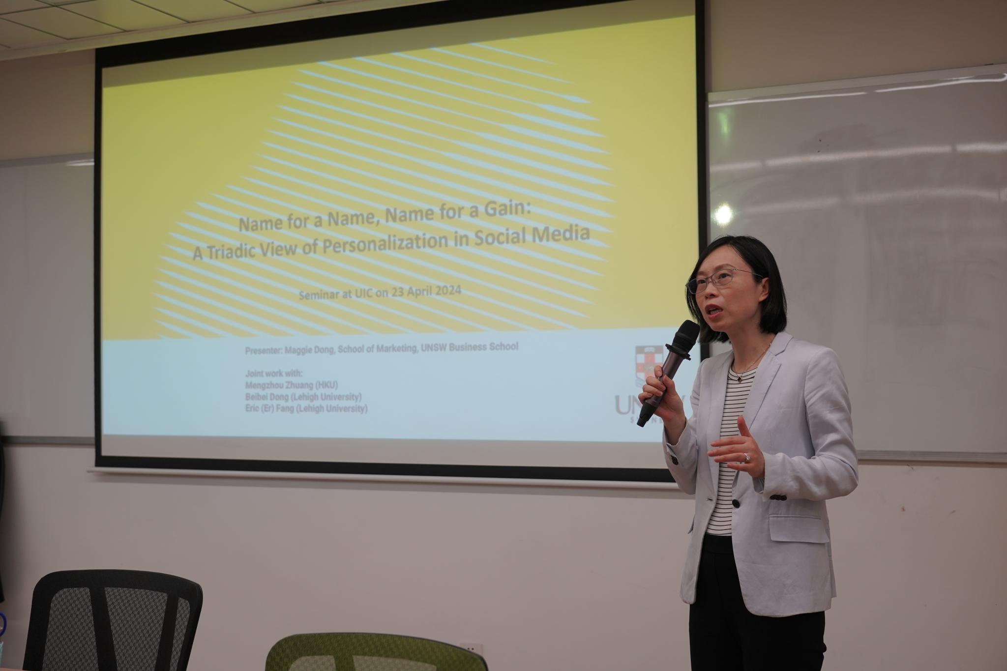 2024年4月23日中午,北师港浸大(UIC)工商管理学院邀请董婥嫣教授带来题为“社交媒体个性化策略的三重视角”的演讲。师生学者齐聚工商管理学院会议室,在董教授的带领下,一齐探讨在个性化营销中,姓名个性化(name personalization)、发件人个性化(sender personalization)和内容个性化(content personalization)对于消费者购买行为的影响。