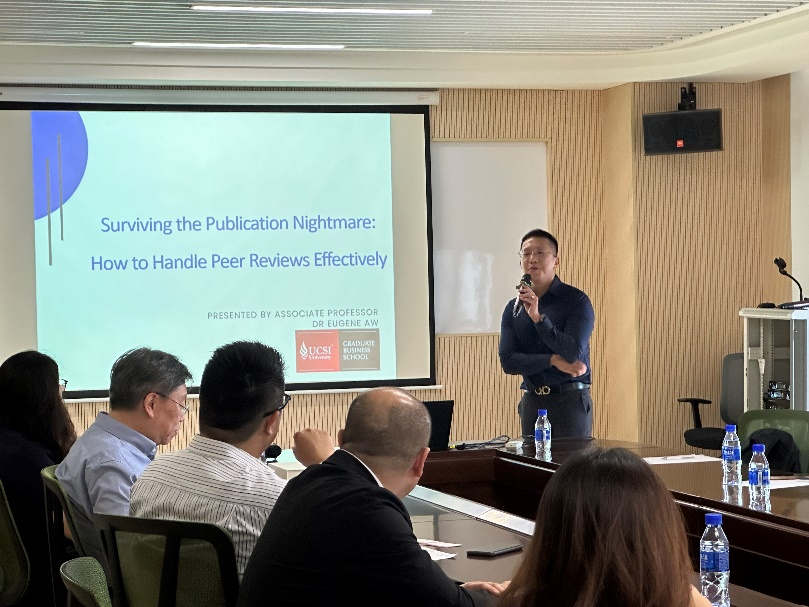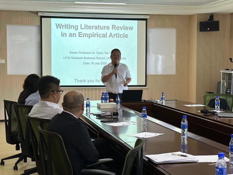 2024年7月16日,马来西亚思特雅大学(University College Sedaya International, UCSI)一行四人来访北师港浸大(UIC),进行科研讲座及开展座谈。来访嘉宾包括行业管理与信息系统杰出教授及商业信息学与行业管理中心主任黄建文教授(Prof. Ooi Keng Boon),资深教授及移动技术与旅游营销课程主任陈维翰教授(Prof. Garry Tan),副教授及科研与研究生课程主任欧程曦博士(Dr. Eugene Cheng-Xi Aw),以及神经心理药理学教授及研究生课程主管Prof. Lee Ming Tatt。