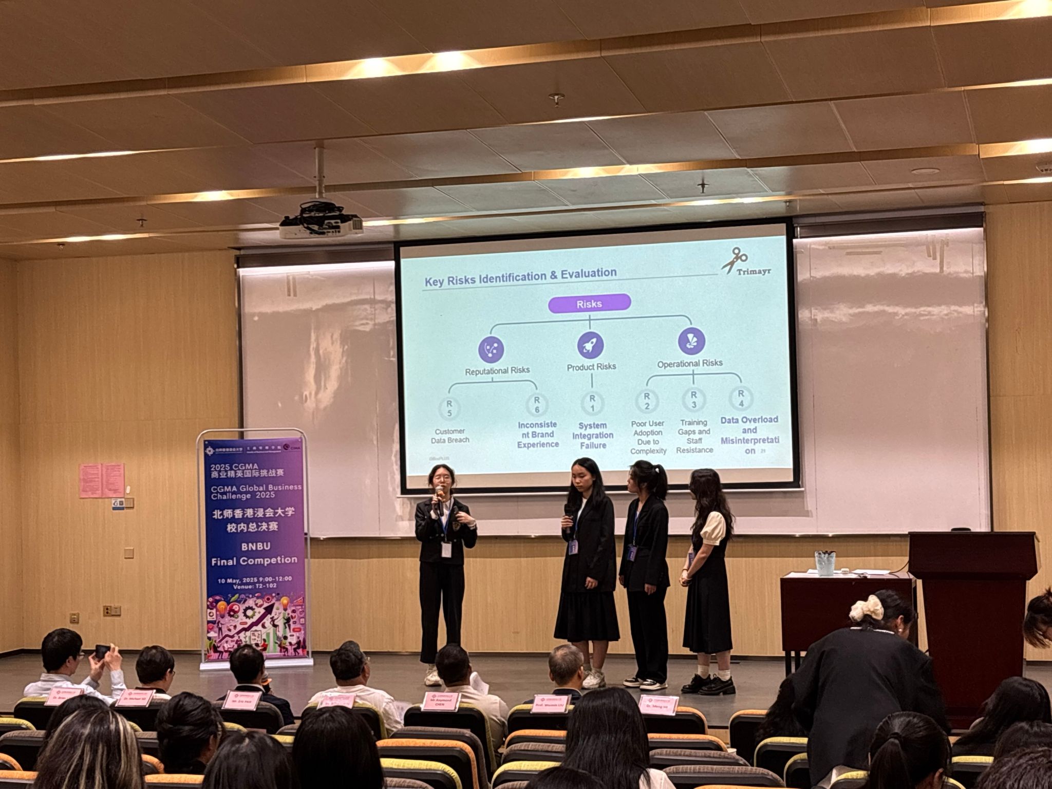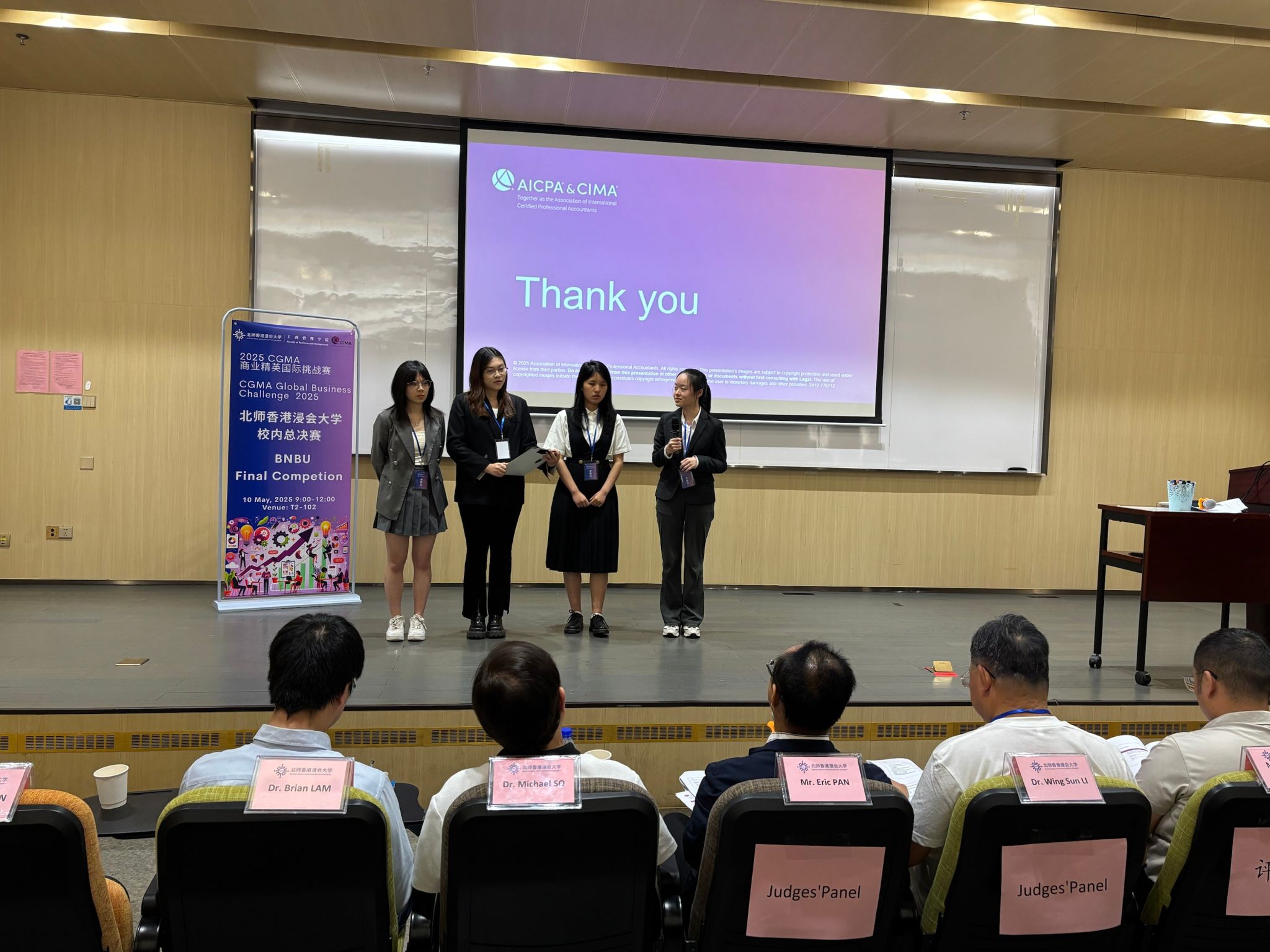 2025年5月10日上午,首届“CGMA商业精英国际挑战赛”北师香港浸会大学(BNBU)校内选拔赛决赛在T2-102演讲厅举行。本次赛事由国际注册专业会计师公会(AICPA & CIMA)主办,BNBU首次受邀参与的该项全球性商业赛事。自4月启动以来,工商管理学院会计系精心筹备,特邀CIMA北亚区前任主席李永燊博士开设案例拆解工作坊,多名会计系教师担任指导老师,从商业报告撰写到现场演讲技巧,为6支由会计系学子组成的战队提供全流程专业辅导。