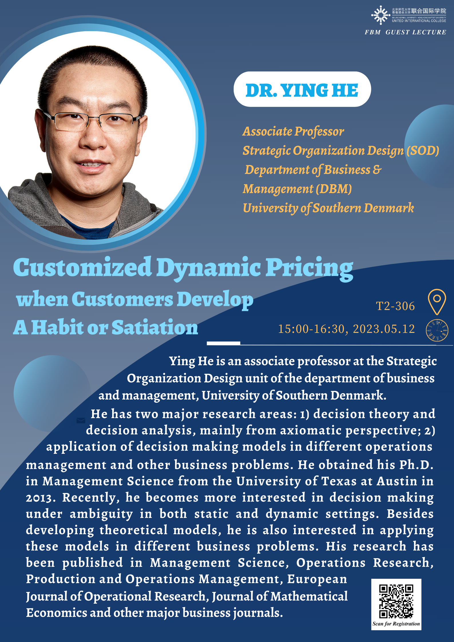 2023年5月12日 - 工商管理学院嘉宾讲座系列#7 - 客户形成习惯或获得满足后的动态定价策略