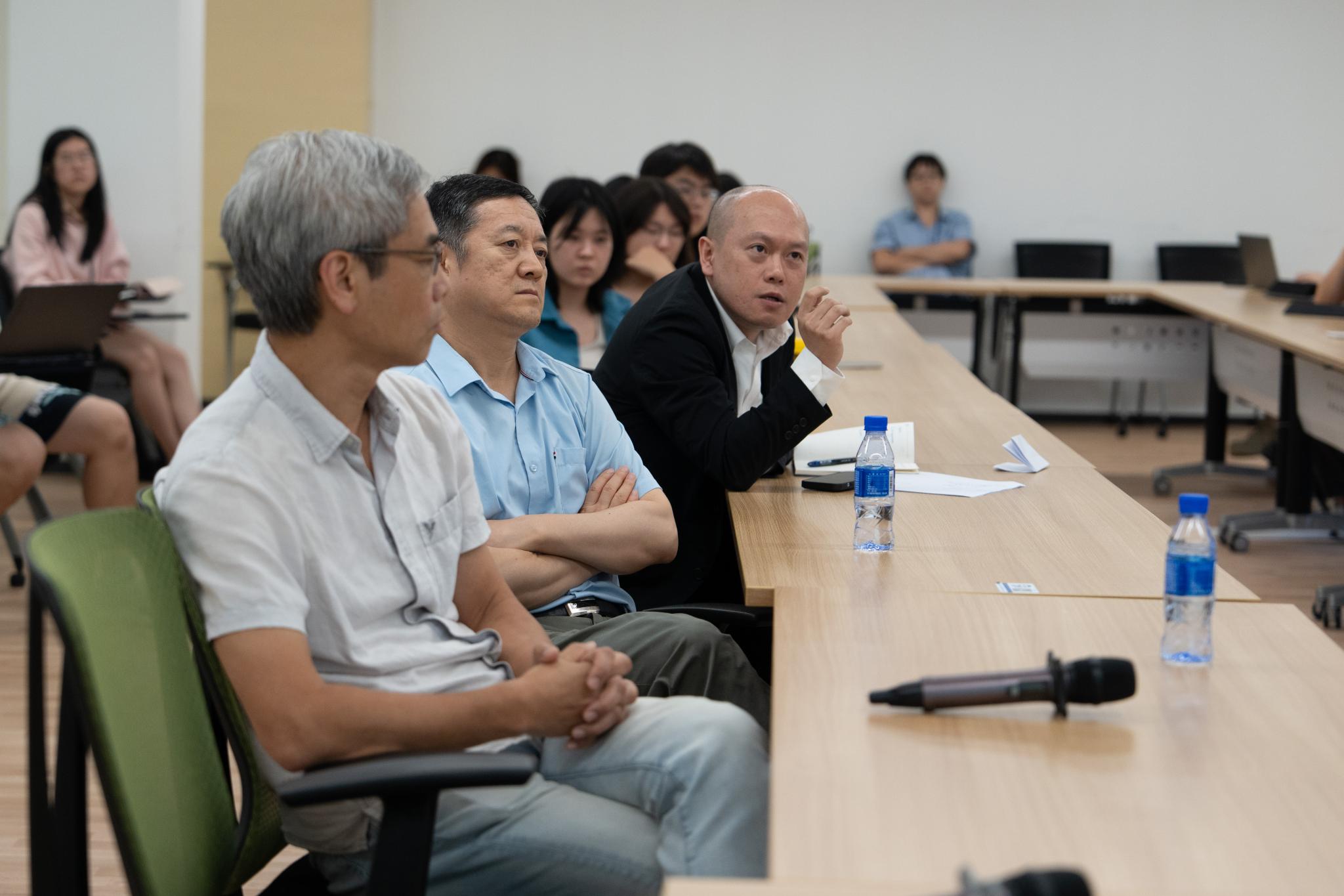 在研讨会之外,Bhattacharyya教授还与工商管理学院助理院长林谧博士、金融经济系系主任施浩博士进行了会谈。在会议上,林谧博士向Bhattacharyya教授介绍了UICFBM的基本情况。双方就先前会谈的内容分享了更具体的合作方案,主要涉及本科与研究生课程的交流合作、博士生访问学习以及教师交流等内容。