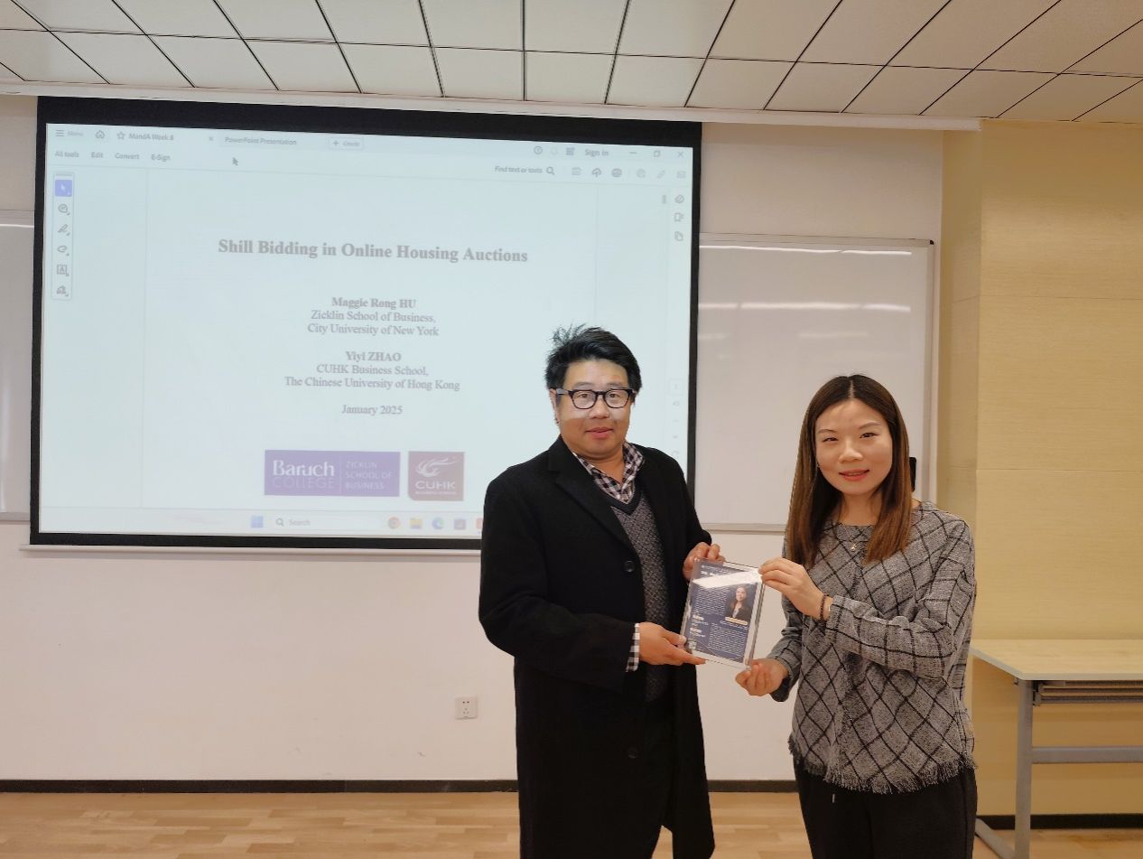 2025年1月10日,应工商管理学院金融经济系助理教授范国源博士邀请,纽约市立大学-巴鲁克学院杰克林商学院W. Newman房地产系助理教授胡荣博士来访UIC进行讲座。