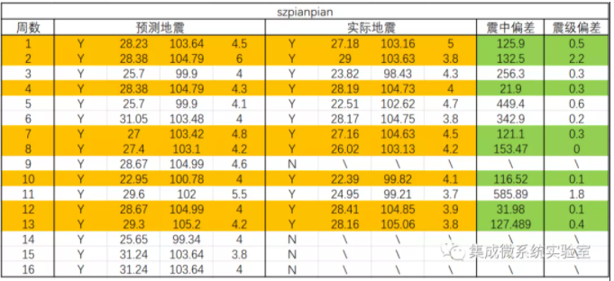决赛从2020年5月10日开始,到2020年9月7日结束,一共提供了16周的观测数据,进行了16次地震预测。战歌博士所带领的团队在决赛中的16次预测中,地震的有无预测命中12次,命中率为75%,在12次有震预测中,8次预测结果比较理想,震级平均误差为0.4885级,震中平均偏差103.98公里,具体如下表所示。精确预测的准确率达到66%,目前还未在任何公开形式的论文或者报道中见到。