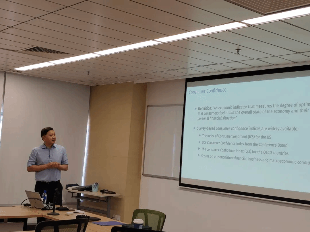 研讨会上,Dr. Yoo进行了题为“什么是消费者信心”的演讲。消费者信心反映消费者对未来经济形势的乐观程度,是反映经济波动的有效指标。目前消费者信心指数的衡量主要是以对受访家庭进行问卷调查的形式,了解其对当下的家庭收入、就业、储蓄、宏观经济形势等方面的评价,以及对这些方面未来一段时间的预期。
