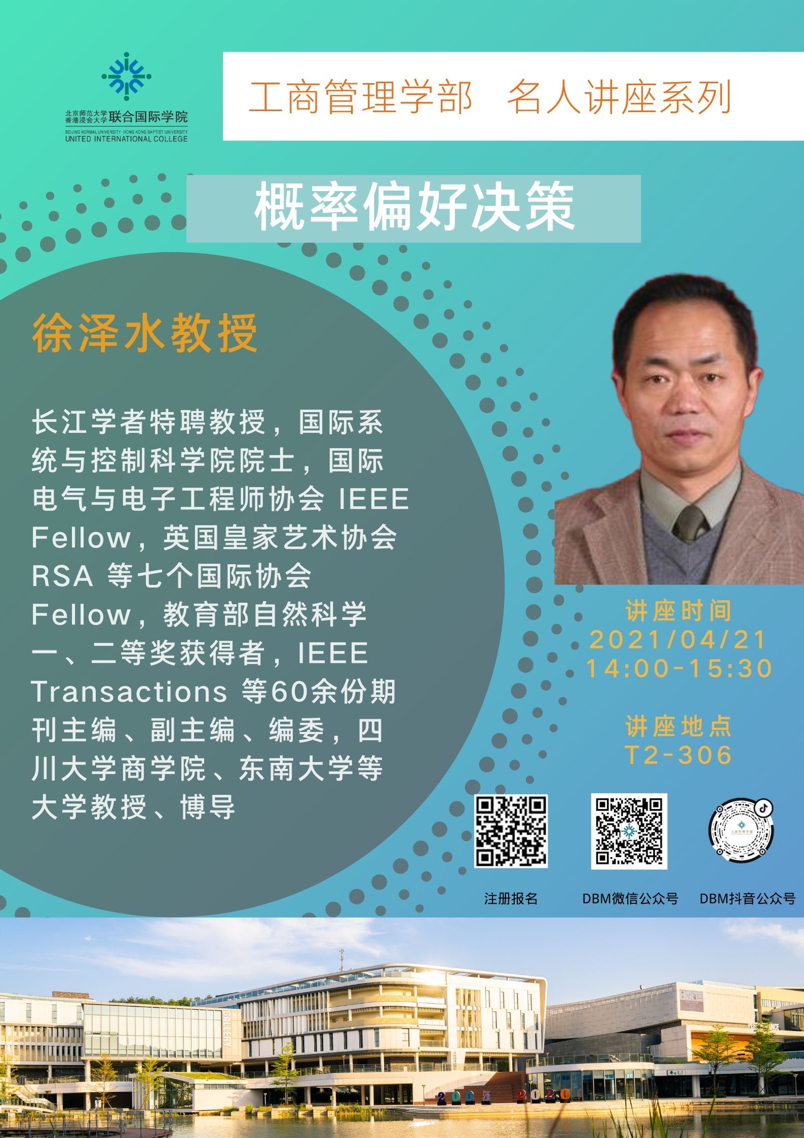 徐泽水是国际系统与控制科学院(IASCYS)院士、国际电气与电子工程师协会(IEEE)、国际模糊系统协会(IFSA)、英国皇家艺术协会(RSA)等7个国际权威协会会士(Fellow)、长江学者特聘教授、国家杰出青年科学基金和中国青年科技奖获得者;2019-2020全球所有学科前10万名科学家终身科学影响力排名分别为第431和258位(2019年年度科学影响力排名世界第30位)、全球高被引科学家(2014-2020:计算机科学、工程学)、中国高被引学者(2014-2019蝉联计算机科学领域榜首)、国家百千万人才工程人选、国家有突出贡献中青年专家、享受国务院特殊津贴专家等;四川大学、东南大学、陆军工程大学、南京信息工程大学等博士生导师。长期从事决策分析、信息融合、模糊数学与优化算法等研究,系统地创建了复杂信息决策理论与方法体系。